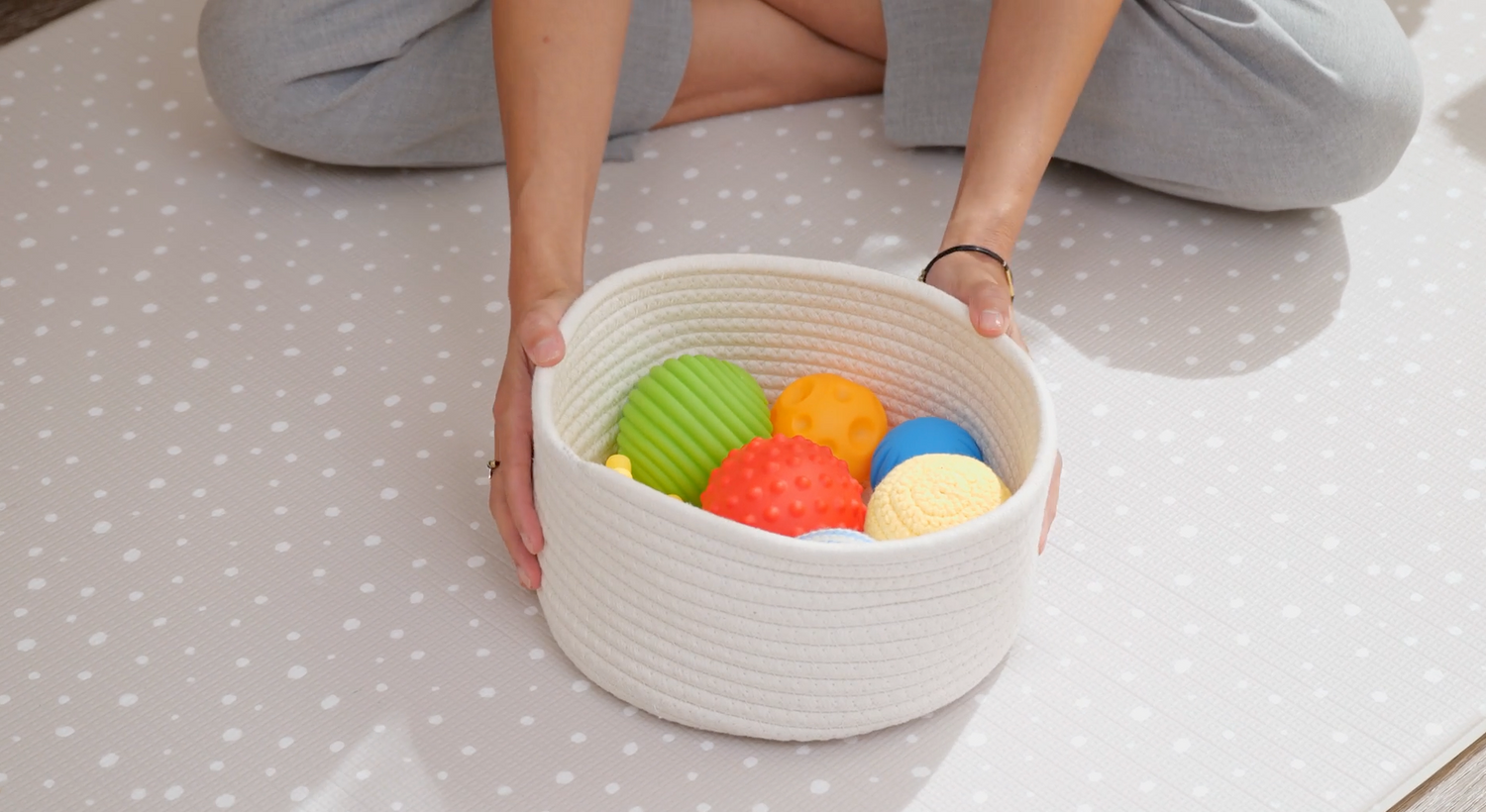 Canasta con pelotas de texturas