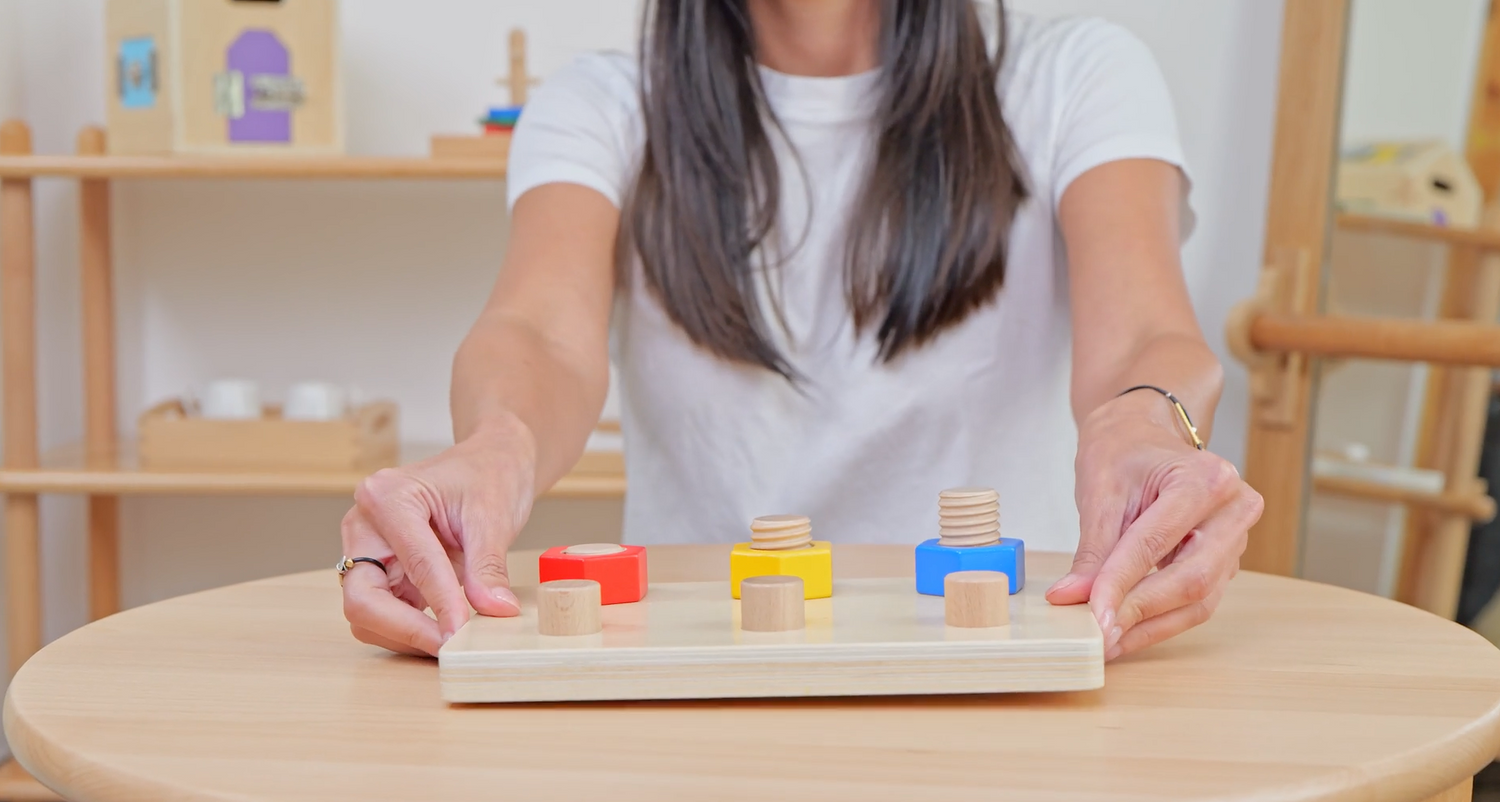 Desafía la coordinación y la paciencia al enroscar y desenroscar piezas. Refuerza la concentración y el control del movimiento.