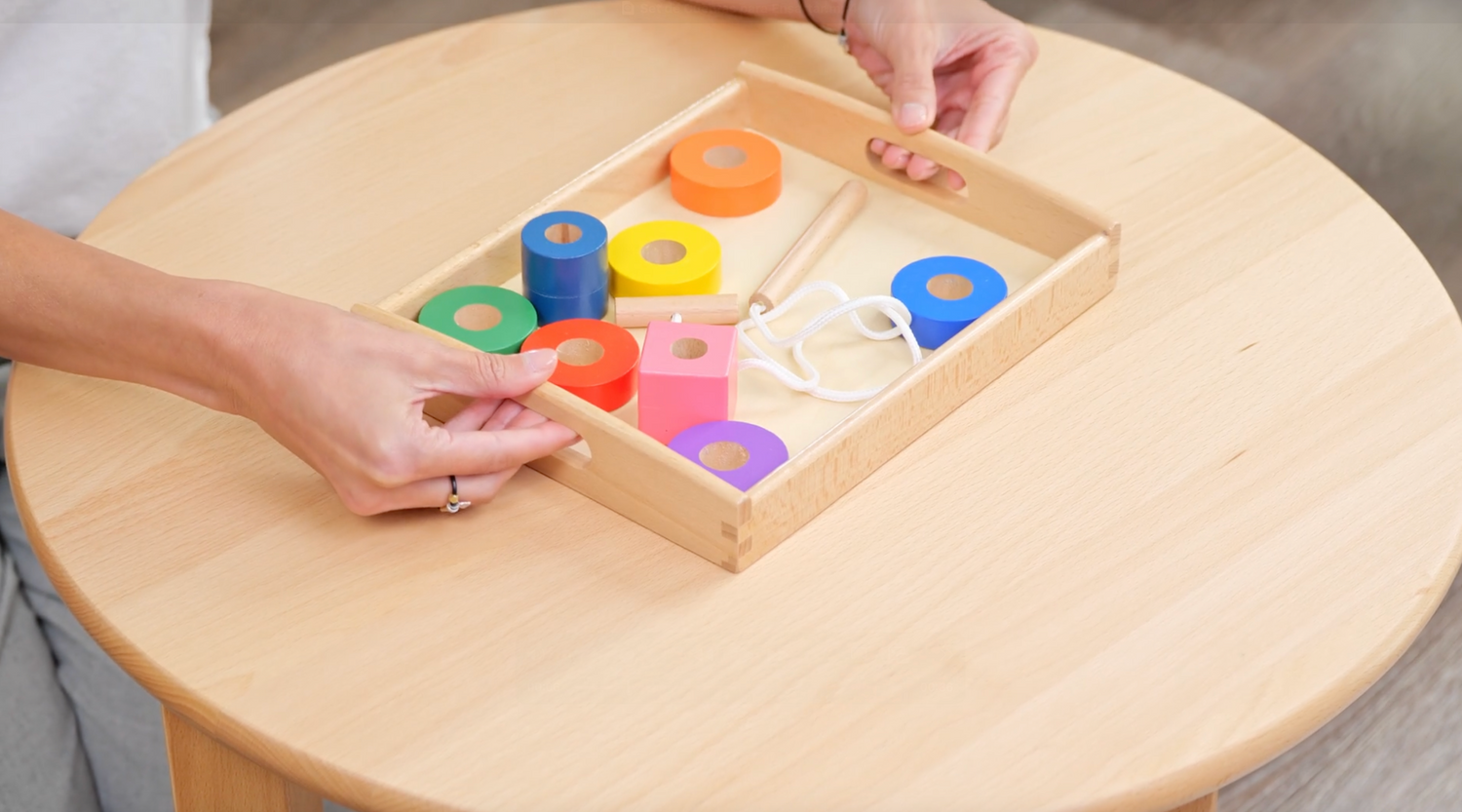 Favorece la motricidad fina y la concentración al enroscar y desenroscar con ambas manos.