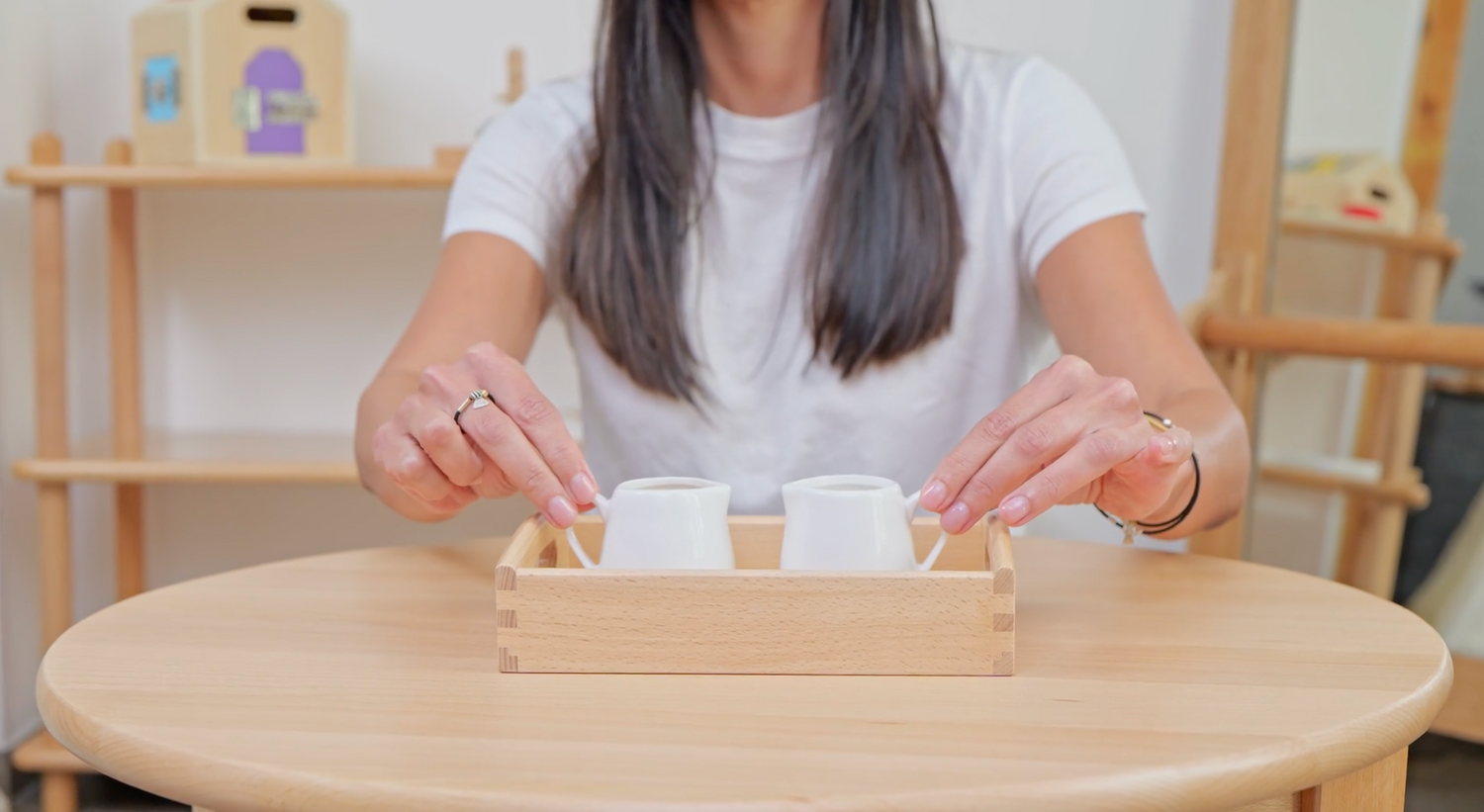 - Muestra cómo usar cada elemento con movimientos lentos y claros, luego deja que lo intente solo.
